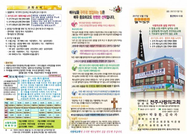 주보 - 통권 제10-51호 작성자 섬김이 작성일17-12-16 19:50 조회522회 댓글0건 관련링크 목록 답변 본문 주보 - 통권 제10-51호 댓글목록 등록된 댓글이 없습니다. 목록 답변