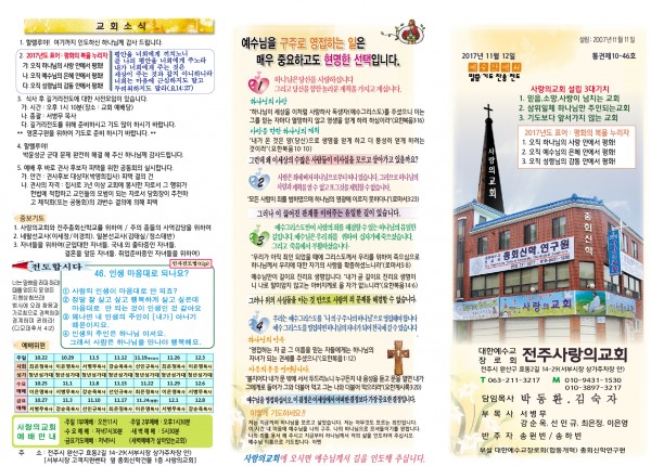 주보 - 통권 제10-46호 작성자 섬김이 작성일17-11-11 00:28 조회513회 댓글0건 관련링크 목록 답변 본문 주보 - 통권 제10-46호 댓글목록 등록된 댓글이 없습니다. 목록 답변